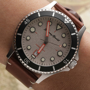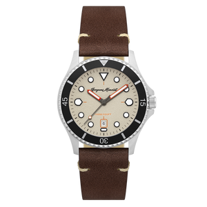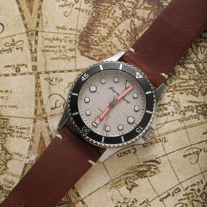 This robust diver is dipped in the colours of a neo-vintage Gallic holiday. Built with intent and dedication, this is a watch with subtle echoes of colour, charm and character throughout the timepiece.