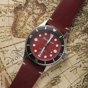 This robust diver is dipped in the colours of a neo-vintage Gallic holiday. Built with intent and dedication, this is a watch with subtle echoes of colour, charm and character throughout the timepiece.