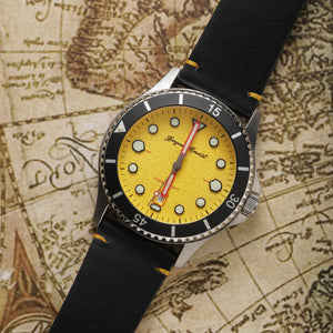 This robust diver is dipped in the colours of a neo-vintage Gallic holiday. Built with intent and dedication, this is a watch with subtle echoes of colour, charm and character throughout the timepiece.
