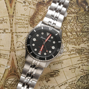 This robust diver is dipped in the colours of a neo-vintage Gallic holiday. Built with intent and dedication, this is a watch with subtle echoes of colour, charm and character throughout the timepiece.